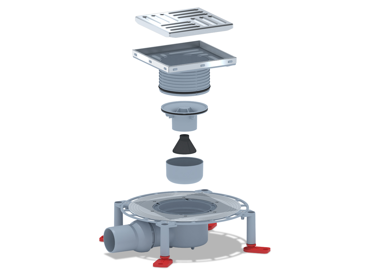 Трап для душа горизонтальный регулируемый с комбинированным затвором, с решёткой из нержавеющей стали 150*150 мм